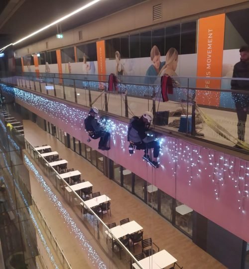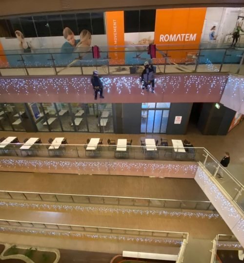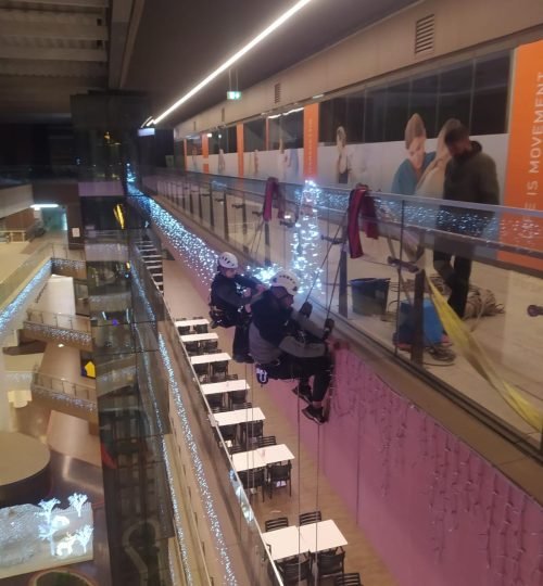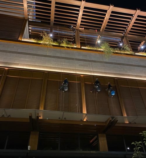 İzmir Mövenpick Hotel’in cam yüzeyleri, profesyonel ekip ve özel ekipmanlarla titizlikle temizlenmiştir. Yüksek standartlarda gerçekleştirilen temizlik sayesinde otelin estetik görünümü ve şeffaflığı korunarak misafirlerine ferah bir atmosfer sunulmuştur.