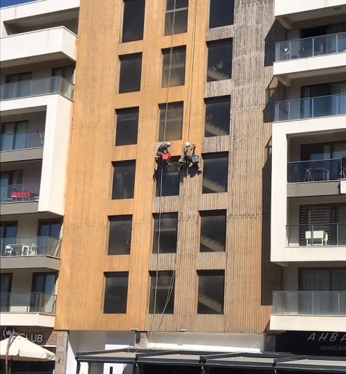 Diamond Sitesi’nin dış cephe cam temizliği, uzman ekibimiz tarafından güvenli ekipmanlar ve özel temizlik ürünleriyle titizlikle gerçekleştirilmiştir.